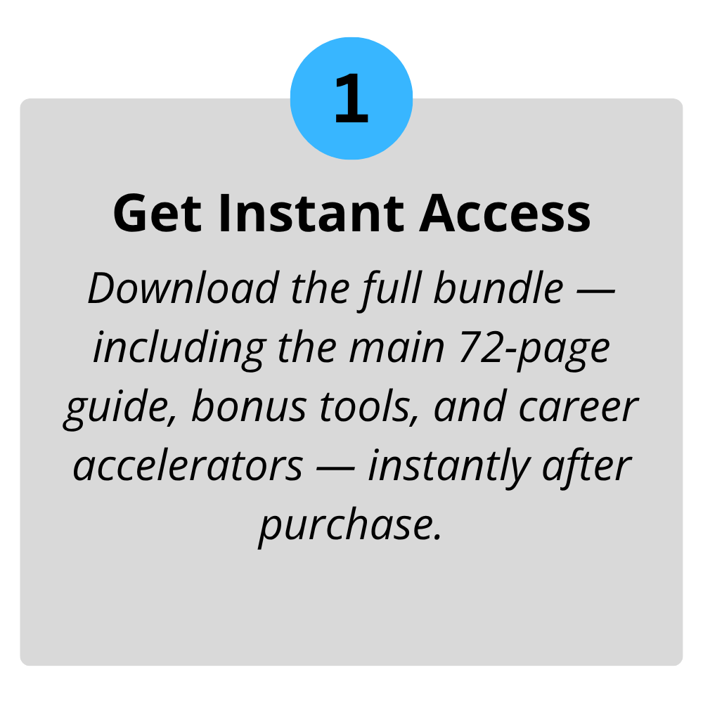 If you implement just one strategy or mindset shift from the guide, it could pay off 500x or even 5000x in future salary, confidence, and opportunities. Honestly, you’re getting a lot more than just a guide, you’re getting clarity, traction, and a head start on your fellow competition.